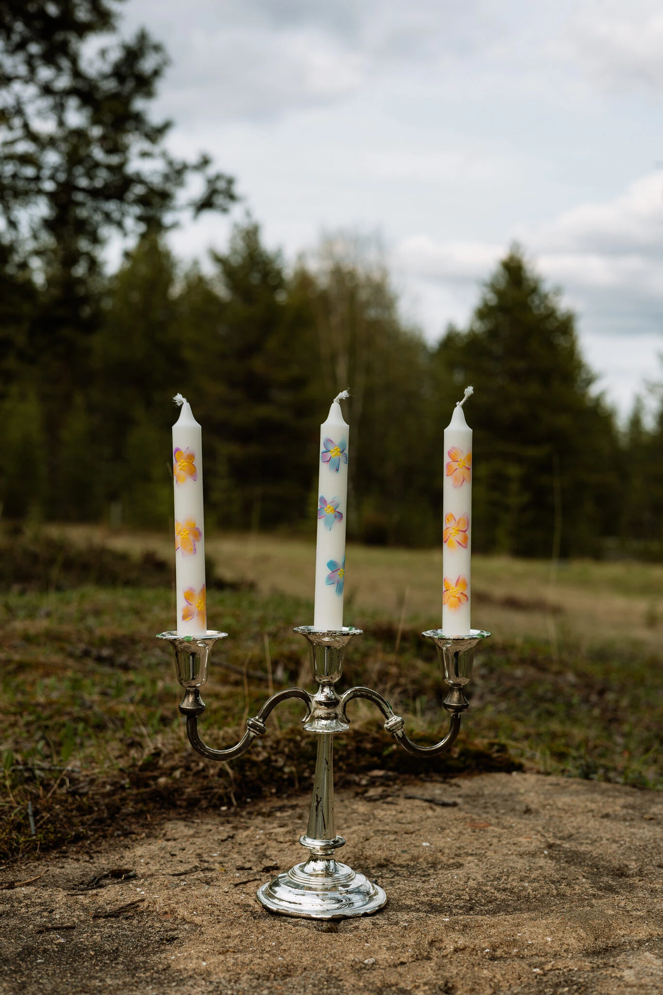 Käsin maalattu kynttilä tuo ripauksen persoonallisuutta kotiisi. Jokainen kynttilä on uniikki yksilö kauniilla kuvalla. Trendikäs sisustukseen tai lahjaksi.