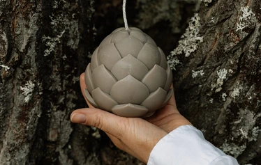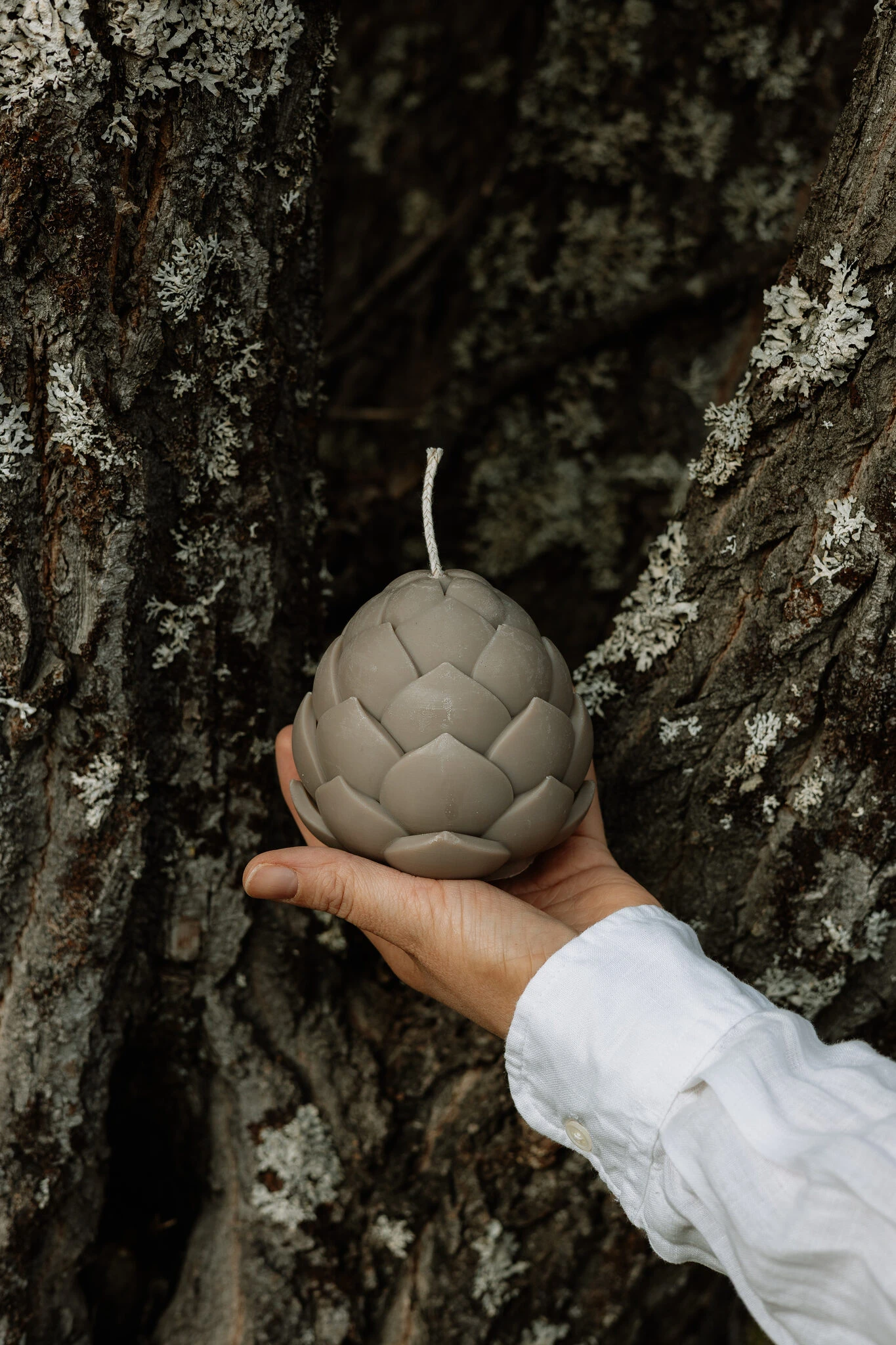 Oliivivahasta valmistettu kävynmuotoinen kynttilä on luonnollinen ja vegaaninen valinta. Käsinvalettu kynttilä hurmaa pehmeällä ja eläväisellä muotoilullaan, ja se palaa tasaisesti ja pitkäkestoisesti. Tämä kynttilä sopii erinomaisesti tunnelman luojaksi niin arkeen kuin erityisiin hetkiin, sekä tyylikkääksi lahjaksi luonnon ystävälle.